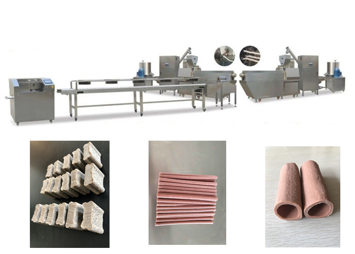 Los Chews/invitación/máquina/perro húmedos Semi-húmedos del ANIMAL DOMÉSTICO de China del bocado del animal doméstico mastican el almidón de las tomas del extrusor como materias primas con la configuración científica y fueron sacados de la máquina del coextruder, él se pueden hacer en muchos clase de formas tales como palillo, ect del hueso. Esta clase de comida de perro no sólo proporciona la nutrición gorda de la vitamina de la proteína para los perros, pero también satisface la afición de la naturaleza del perro. Tiene características siguientes: fortalezca los dientes, boca limpia y los dientes, los productos pueden estar en muchas formas, como la torsión, bicolor, corazón-llenando y así sucesivamente.